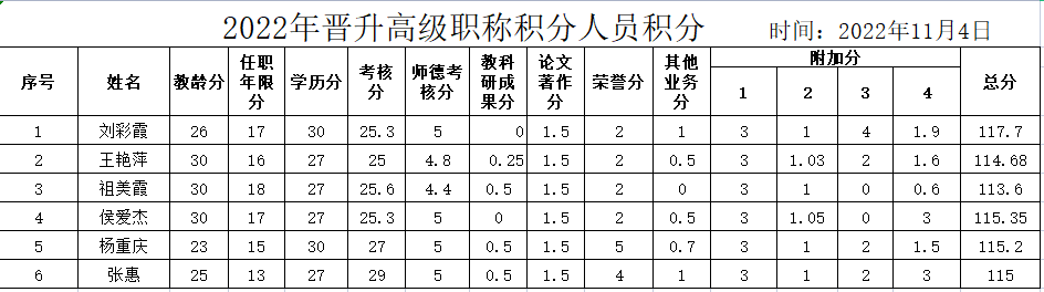 2022年寿光市圣城中学晋升中高级职称人员积分公示