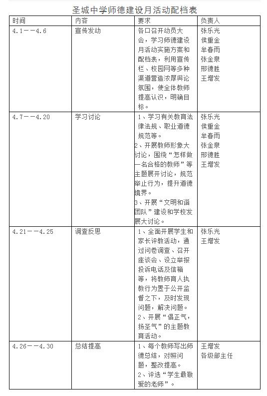 圣城中学师德建设月活动配档表