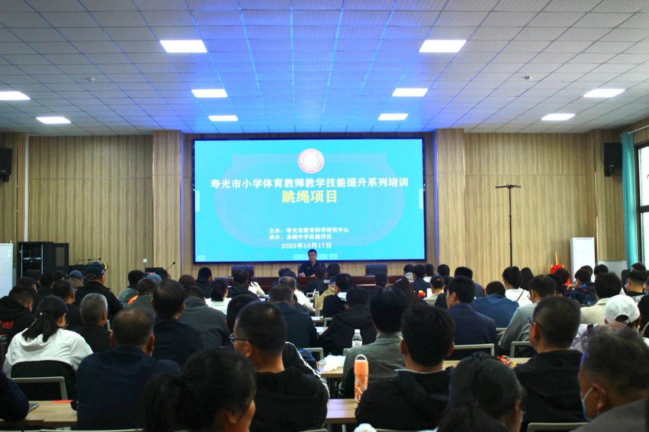 为加强落实“五育并举”的要求,提高小学体育教师的专业素养和专业技能,10月17日上午,在寿光市圣城中学巨能校区举办了寿光市小学体育教师技能提升系列培训——跳绳项目的培训,寿光市教科研中心体育教研员袁茂林,圣城中学副校长张海艳,各小学体育学科带头人、骨干教师、教研组长以及青年教师等120多名教师参加。