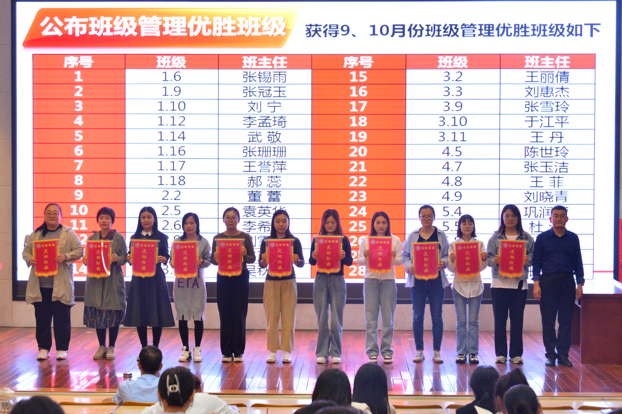 会议开始由小学学生课程发展中心副主任刘魁伟公布了优胜班级获奖名单。张金泉副校长、李映美主任、蒋锡水主任为获奖班级的班主任代表颁发了流动红旗,并鼓励其他班级向优秀班级看齐,共同营造一个积极向上的班级氛围。