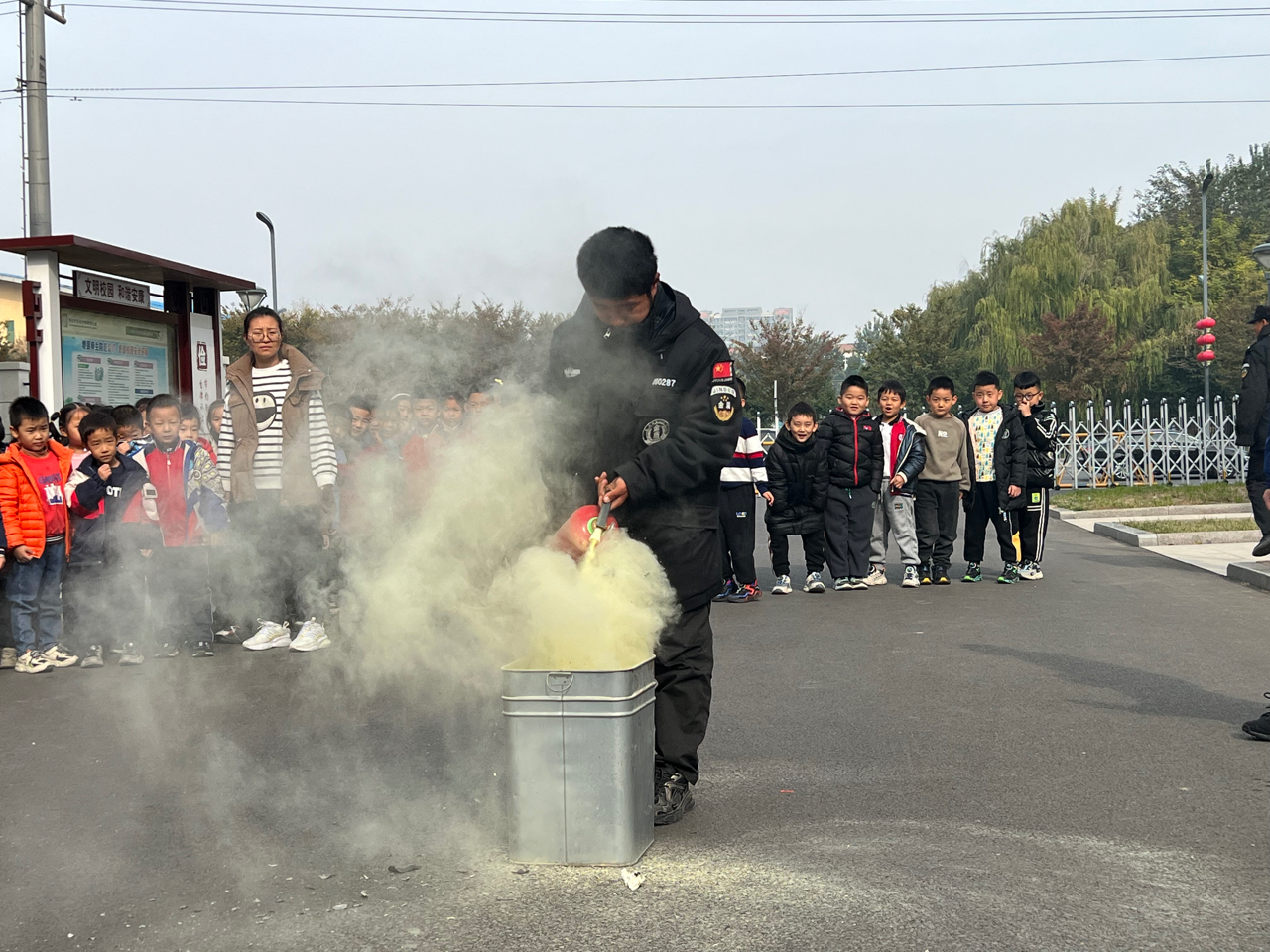 消防员还给大家进行了现场灭火演示,讲解了如何使用干粉灭火器灭火,重点强调了操作灭火器时的注意事项,部分教职员工还进行了实际操作,切实掌握了灭火器及消防栓的使用方法。
