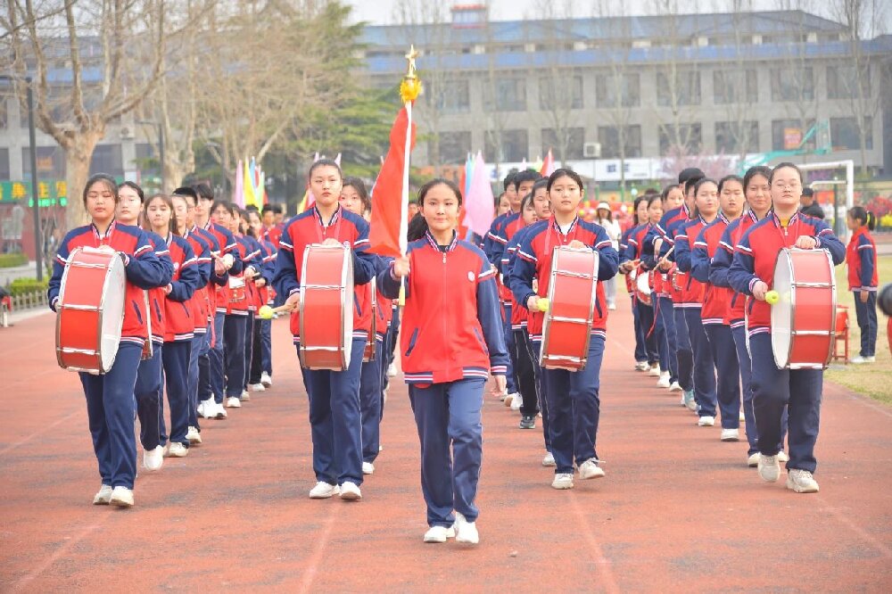 鼓号队奏响激昂的旋律,彩旗队挥舞着缤纷的旗帜,激励的战鼓在空中回响,青春的活力在心中荡漾。