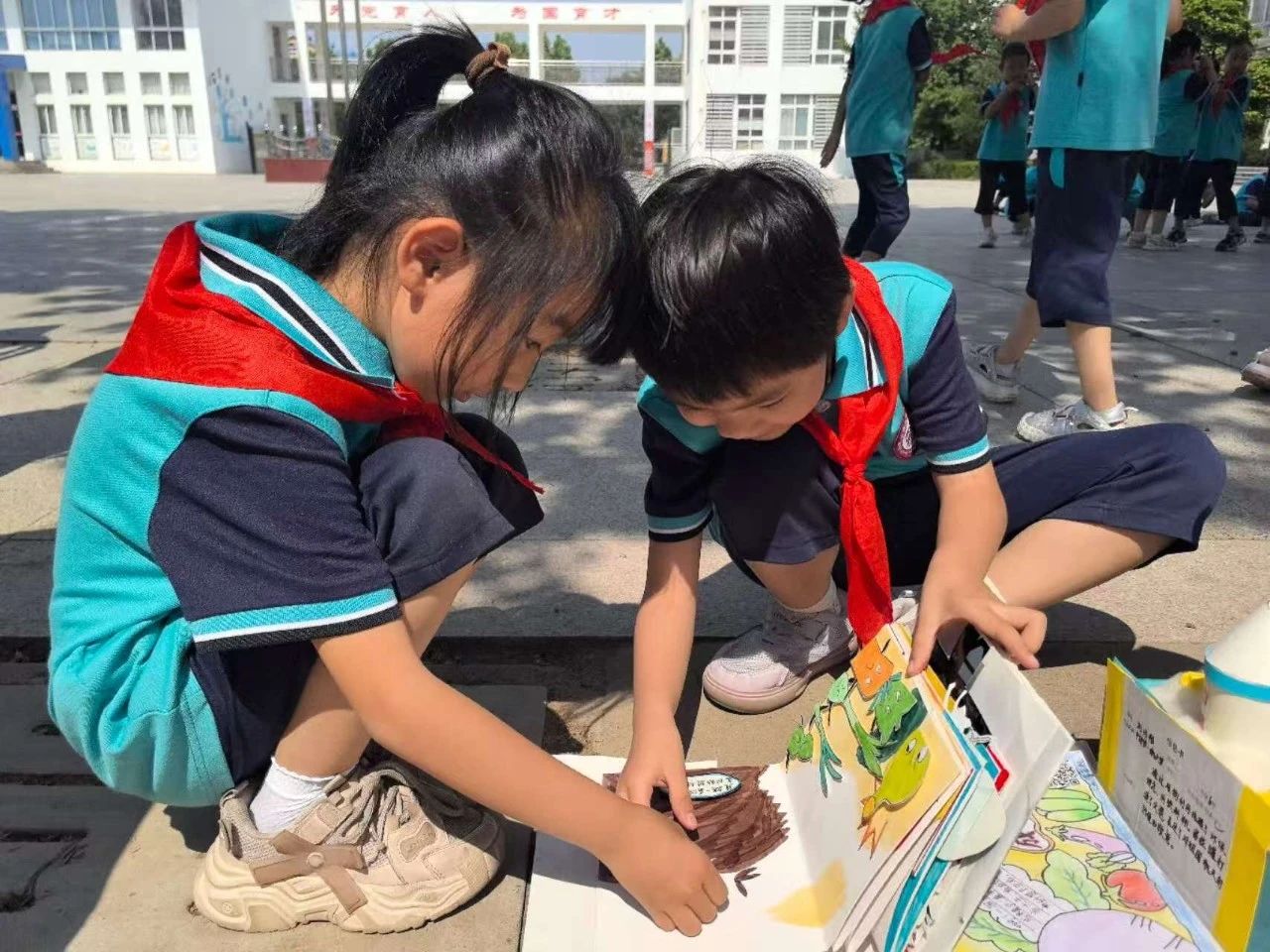 一年级萌娃化身“小作家”,用绘本讲述大世界。 绘本展区集中展示学生自制绘本作品,内容涵盖成长故事、自然探索、传统文化等多元主题。展区内,小读者们围坐在“故事角”,聆听讲解员分享绘本中的精彩情节,现场洋溢着浓郁的书香氛围。此次绘本展既是语言表达与艺术创作的实践,更是培养逻辑思维与文化理解的重要载体。